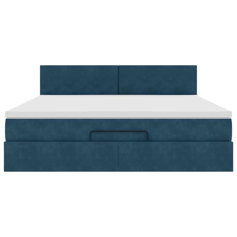 Османска легло с матрак и LED, тъмносиньо, 160x200 см, кадифе