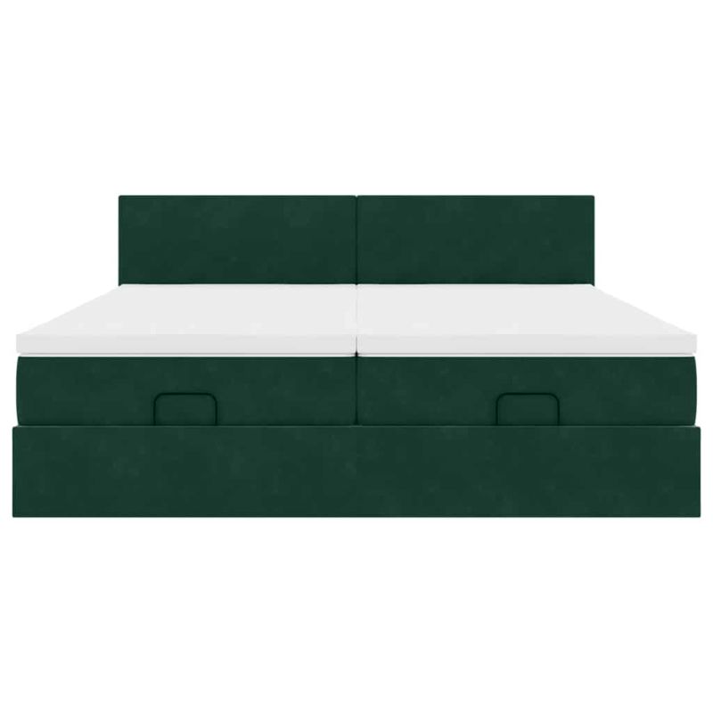Начало Мебели Легла и аксесоари Легла и рамки за легла Османска легло с матраци и LED, тъмнозелено, 180x200 см, кадифе