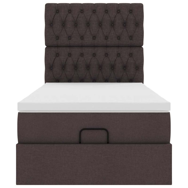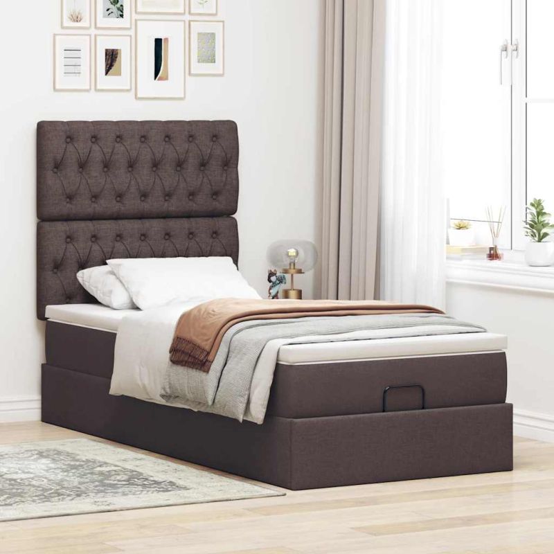 Османска легло с матрак, тъмнокафяво, 90x190 см, плат