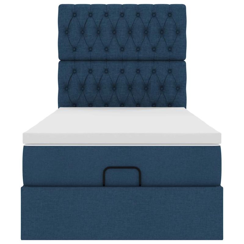 Османска легло с матрак, синьо, 90x200 см, плат