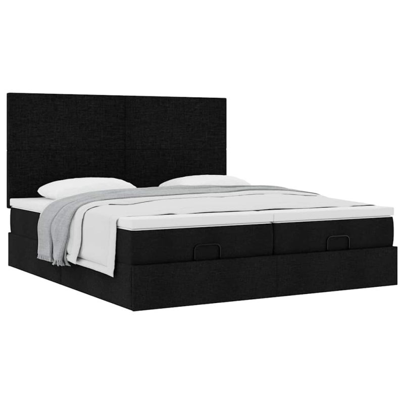Османска легло с матраци, черно, 200x200 см, плат
