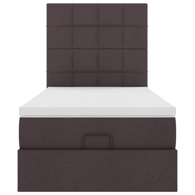 Османска легло с матрак и LED, тъмнокафяво, 100x200 см, плат