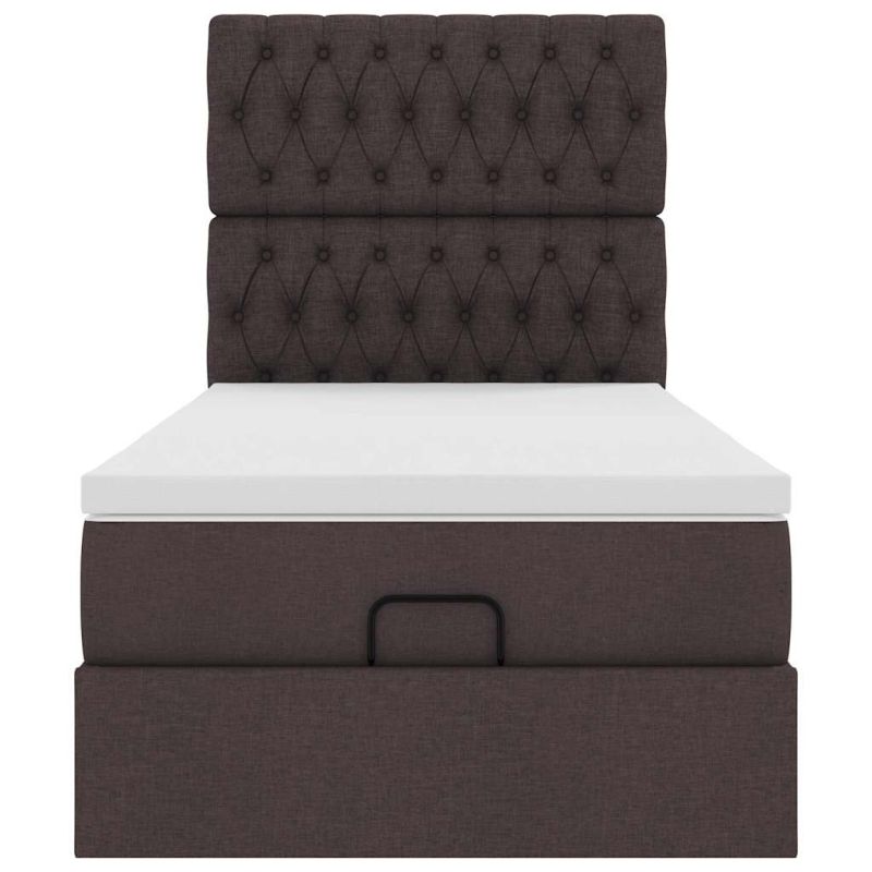 Османска легло с матрак и LED, тъмнокафяво, 100x200 см, плат