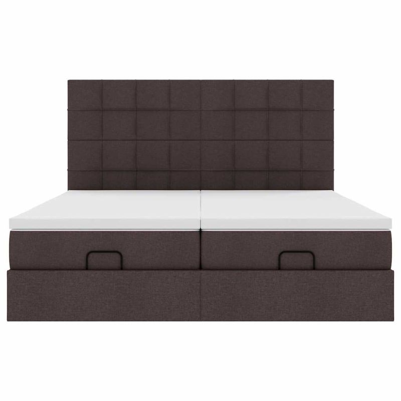 Османска легло с матраци и LED, тъмнокафяво, 180x200 см, плат