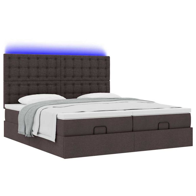 Османска легло с матрак и LED, тъмнокафяво, 200x200 см, плат