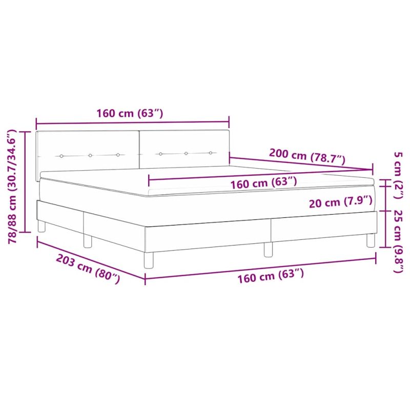 Леглото с пружини 'Модерен' е идеално за съвременната спалня. Със своите чисти линии и минималистичен вид, допълва всяко пространство, осигурявайки комфорт и стил. Подходящо е за различни интериорни стилове. Материали: Леглото е направено от кадифе, пяна и инженерна дървесина. Кадифето е меко и дишащо, а инженерната дървесина е здрава, което значи дълготрайност. С интегрираната пяна, ще получите отлично удобство. Включени компоненти: Леглото идва с стабилна рамка от нееластични летви, която предлага поддръжка. Изкуствена кожа на главата и масивна борова дървесина добавят стил и удобство за комфорта на главата. Всички компоненти съчетават функционалност и елегантност. Характеристики: Със съвременен стил и простота, леглото е универсално за всяка спалня. Регулируемата табла за глава с две височини предлага удобство, за да пасне на вашите нужди. Това добавя комфорт и гъвкавост. Препоръчителни употреби: Идеално за всяка спалня, леглото е проектирано за вътрешна употреба, предлагайки широко удобство. Издръжливата му конструкция го прави подходящо за хора със различни предпочитания, от градски апартаменти до предградия. Грижа и поддръжка: За да изглежда леглото добре, почиствайте кадифето с суха кърпа. Избягвайте агресивни химикали и редовно проверявайте за разхлабени компоненти, които трябва да затегнете.