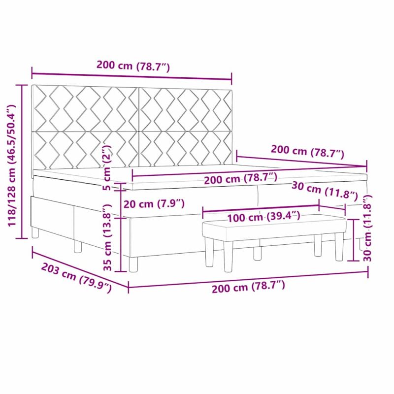 Легло с пружинирана основа Тъмен кафяв 200 x 200 cm текстил