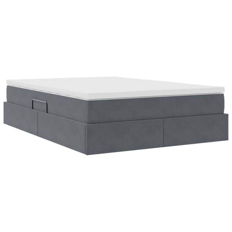 Легло с място за съхранение и матрак Тъмен сив 140 x 200 cm