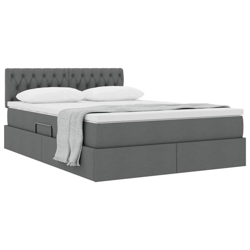 Легло с място за съхранение и матрак Тъмен сив 140 x 190 cm