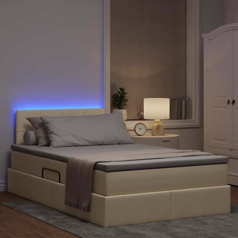 Легло с място за съхранение и LED Кремав 120 x 200 cm текстил