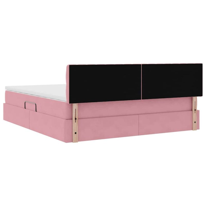 Легло с място за съхранение и LED Розово 180 x 200 cm Кадифе