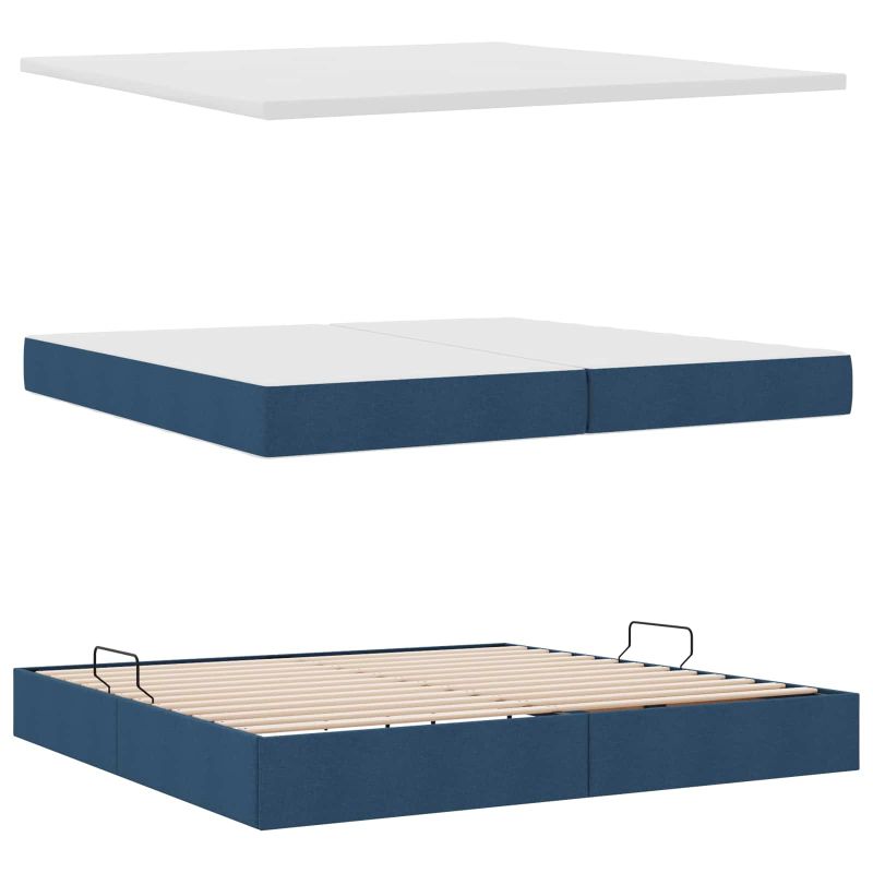 Легло с място за съхранение и LED Синьо 200 x 200 cm Полиестер