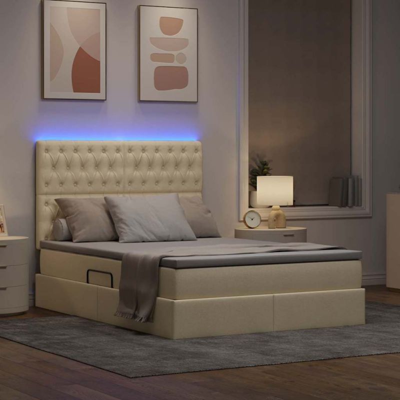 Начало Мебели Легла и аксесоари Легла и рамки за легла Легло с място за съхранение и LED Кремав 140 x 200 cm Полиестер