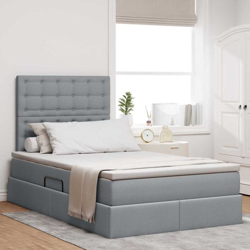 Легло с място за съхранение и LED с LED Светлосиво 120 x 200 cm