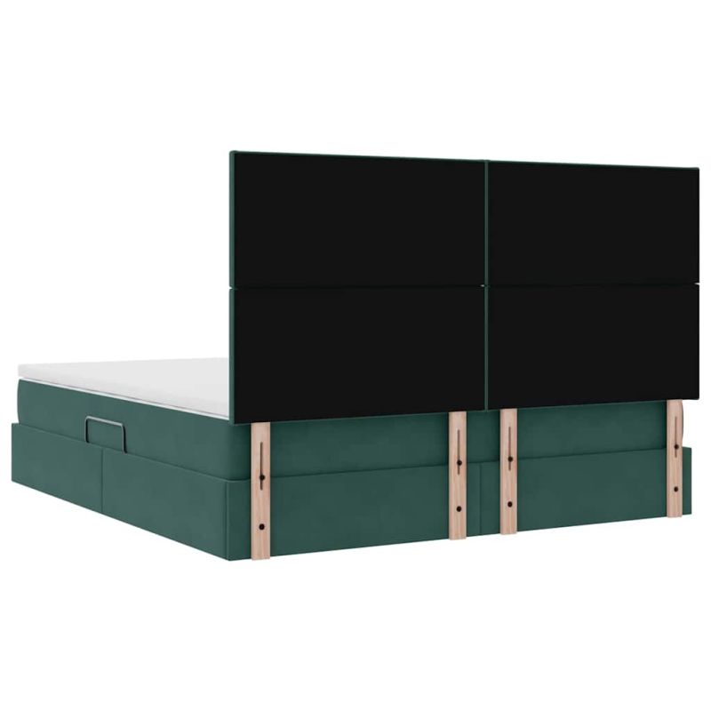 Легло с място за съхранение и LED Тъмен зелен 160 x 200 cm
