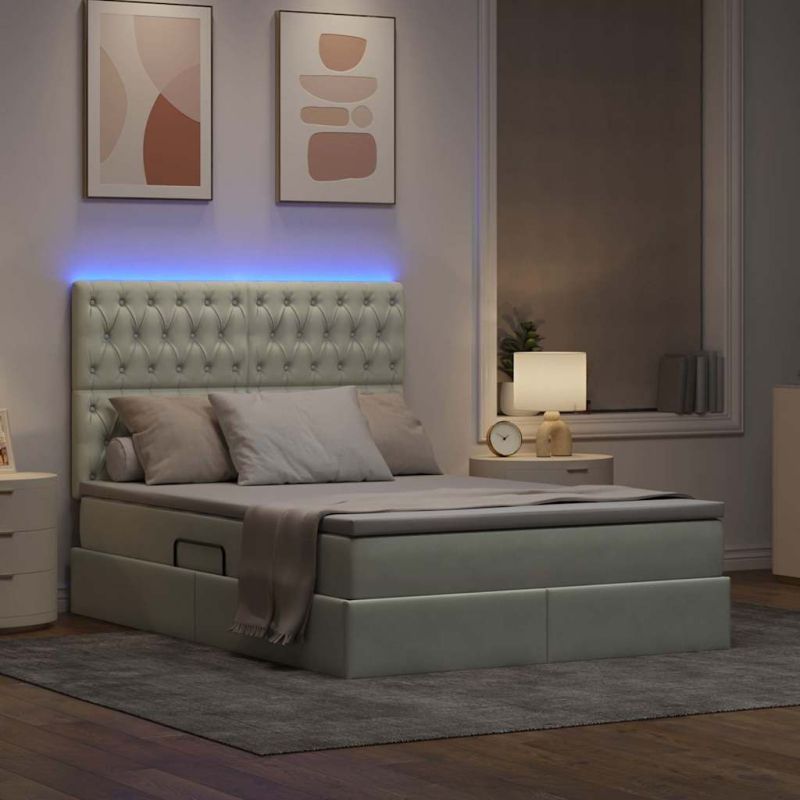 Легло с място за съхранение и LED с LED Светлосиво 140 x 200 cm