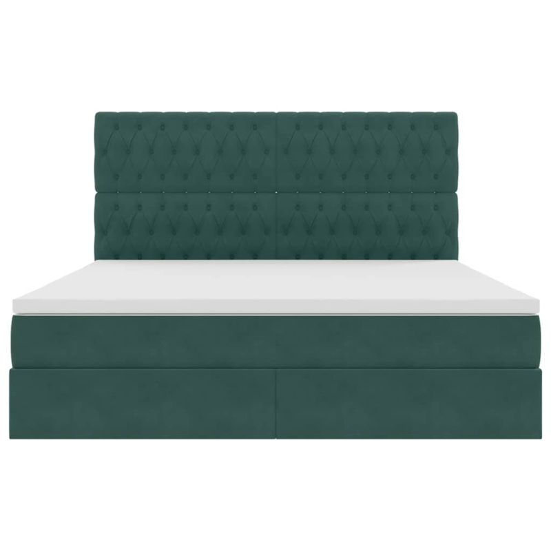 Легло с място за съхранение и LED Тъмен зелен 160 x 200 cm