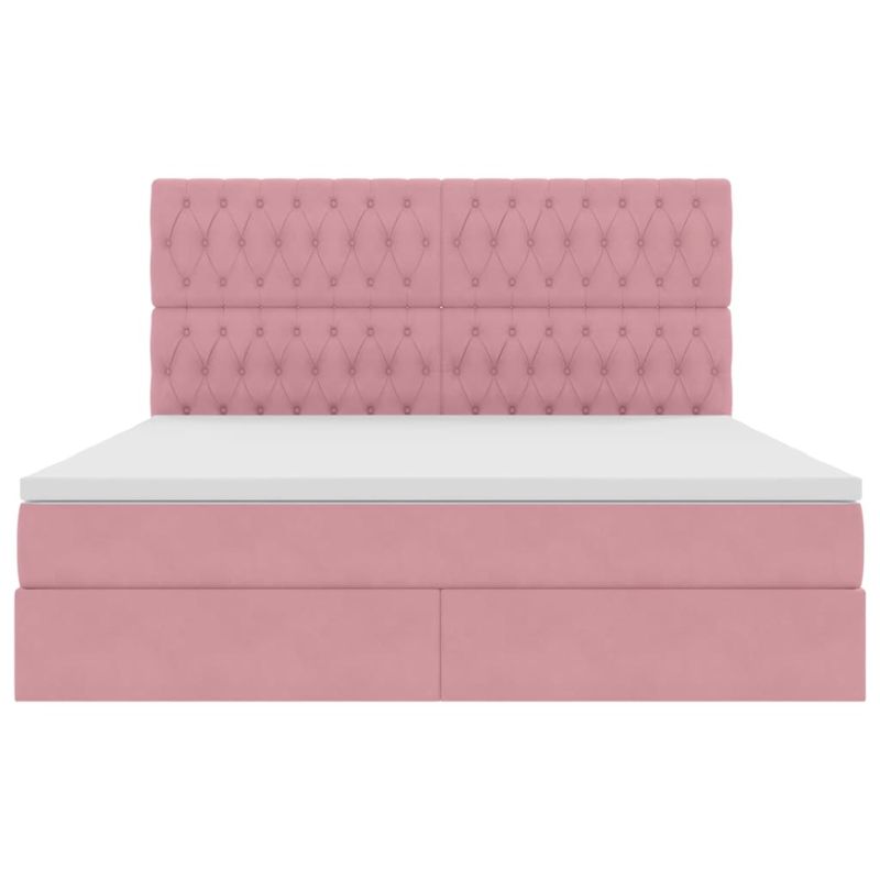 Легло с място за съхранение и LED Розово 180 x 200 cm Кадифе