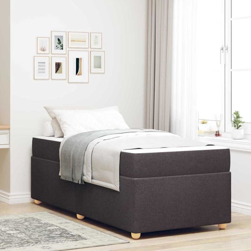 Рамка за легло с матрак Тъмен кафяв 90 x 190 cm текстил