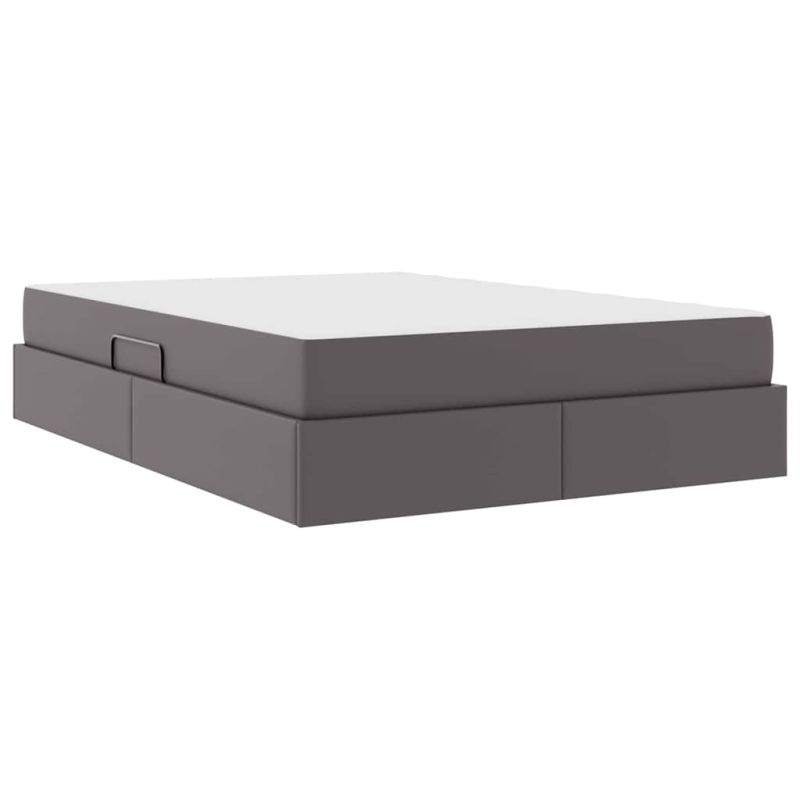 Легло с място за съхранение и матрак с матрак 2 pcs Сив Кожа