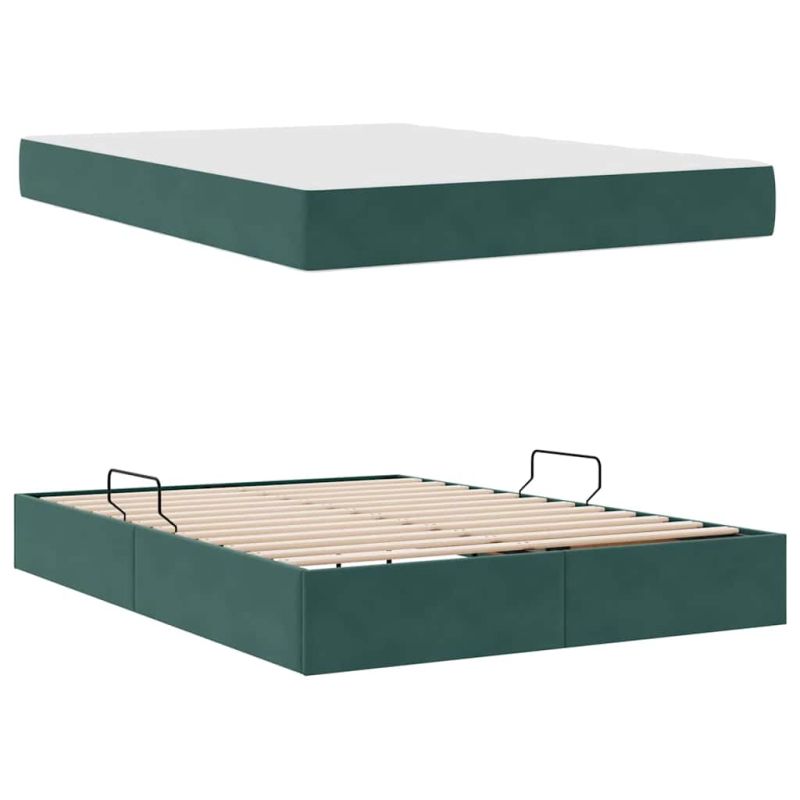 Легло с място за съхранение и матрак Тъмен зелен 140 x 200 cm