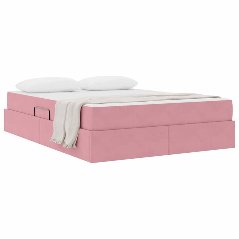 Легло с място за съхранение и матрак Розово 140 x 200 cm Кадифе