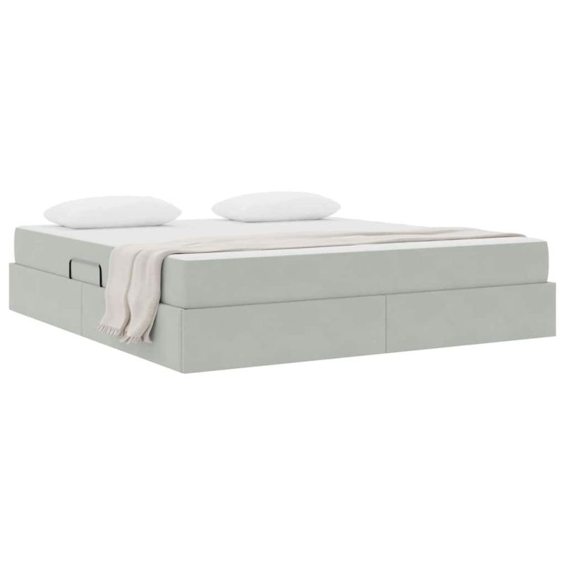 Легло с място за съхранение и матрак Светлосиво 160 x 200 cm
