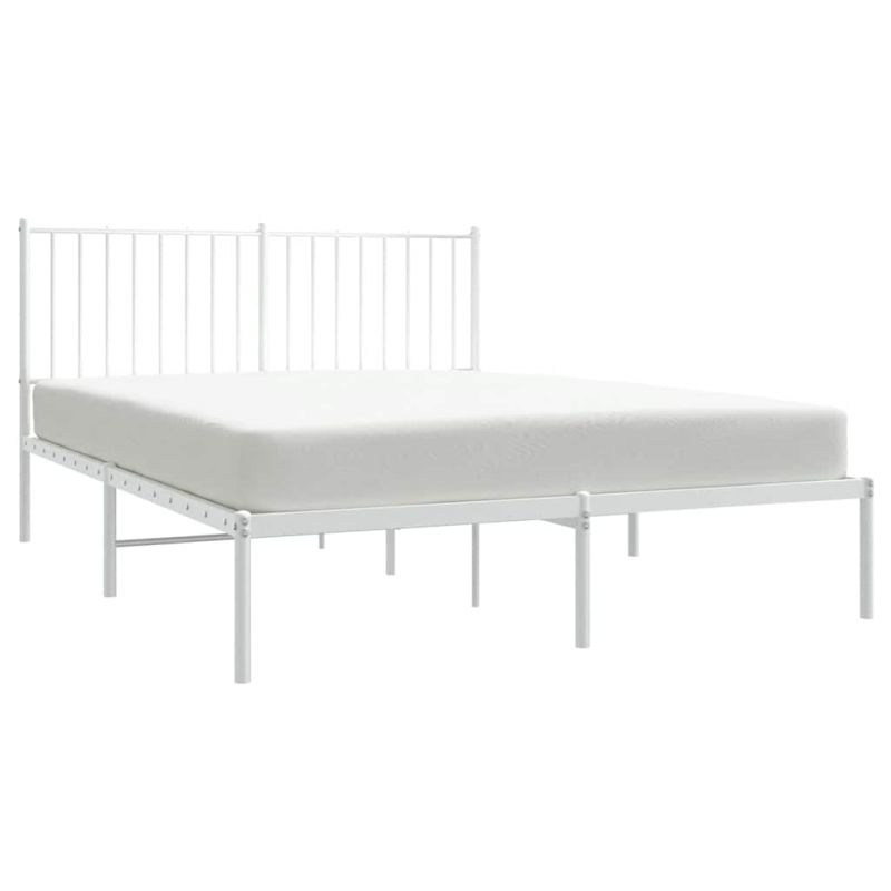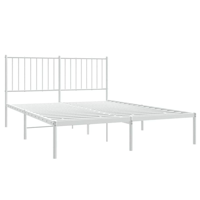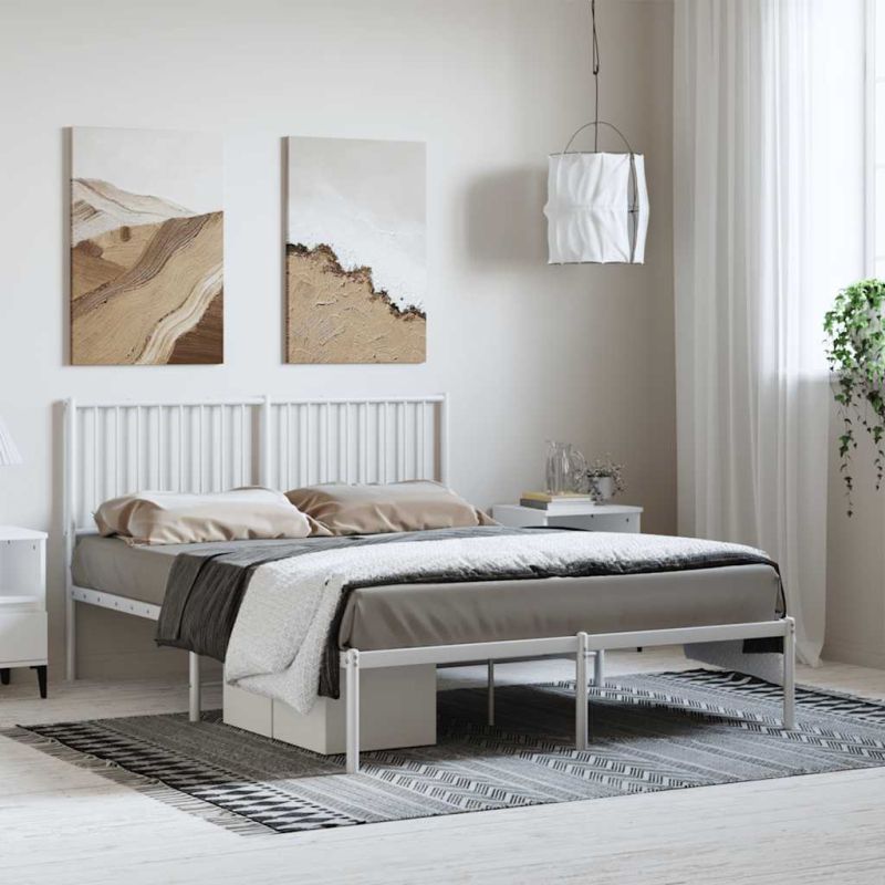 Метална рамка за легло с горна табла, бяла, 135x190 см