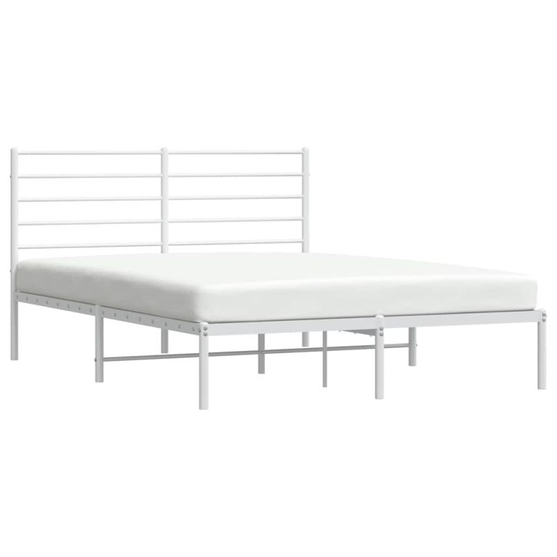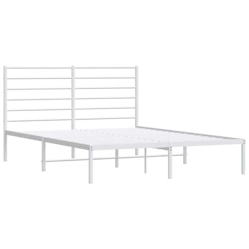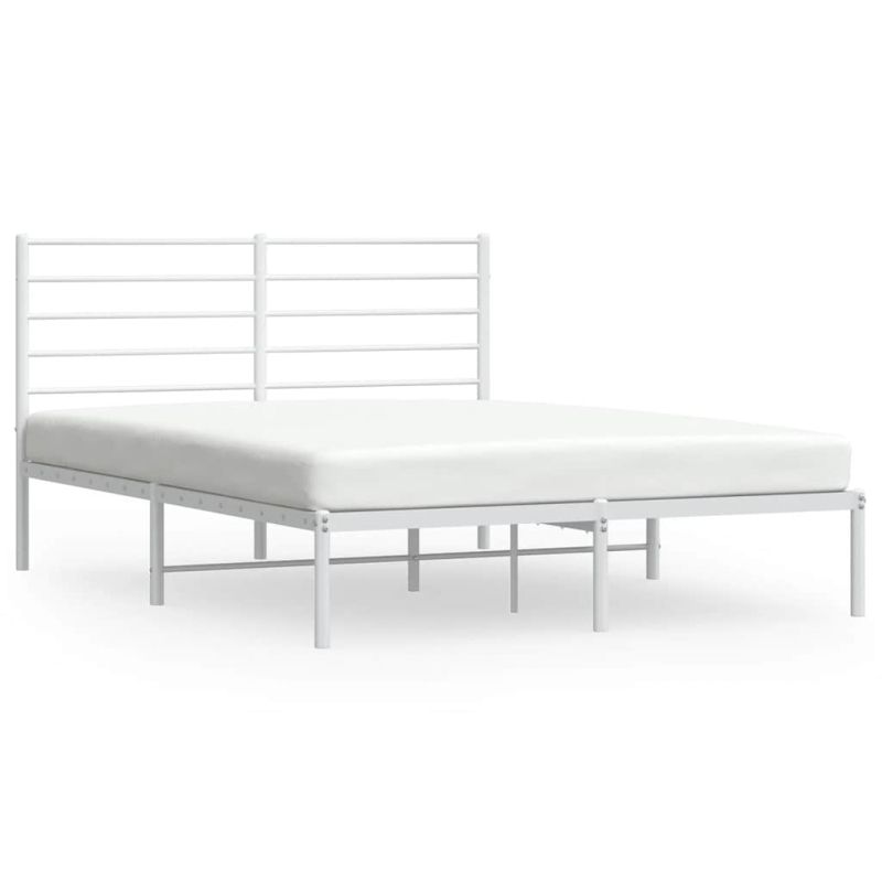 Метална рамка за легло с горна табла, бяла, 150x200 см