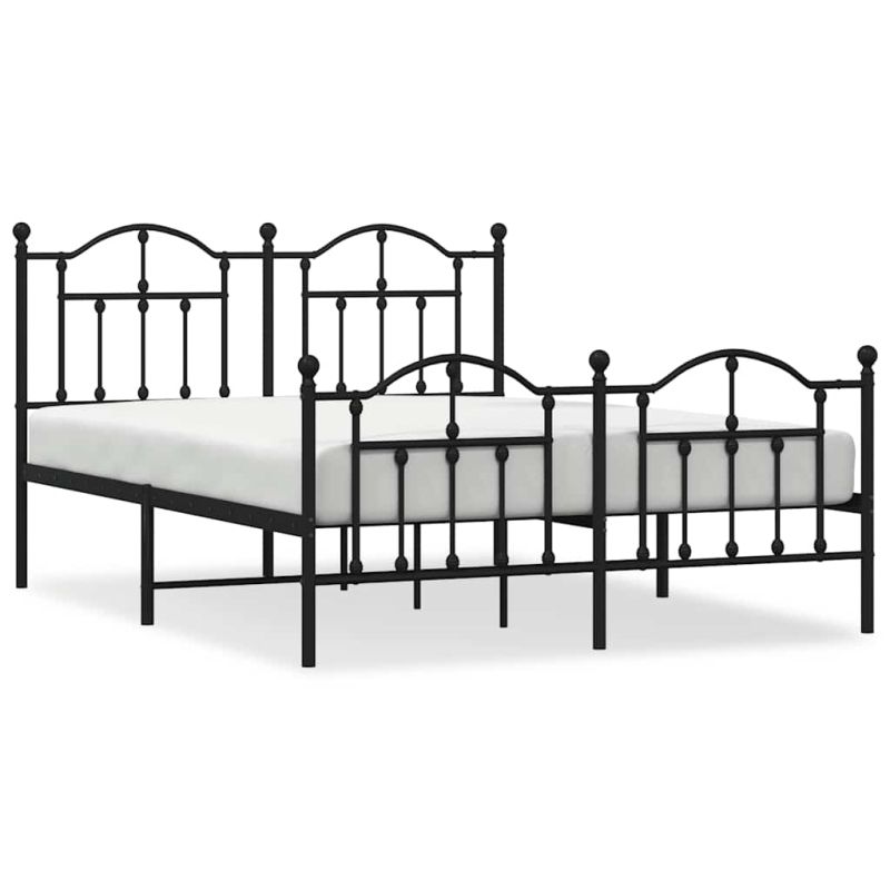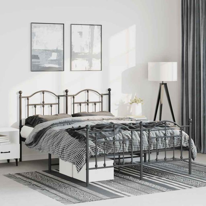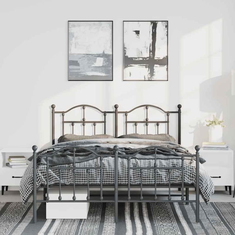 Метална рамка за легло с горна и долна табла, черна, 150x200 см