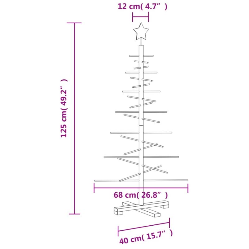 Начало Дом и градина Декор Сезонни и празнични декорации Коледни елхи Дървена коледна елха за декорация 125 см масивно чамово дърво