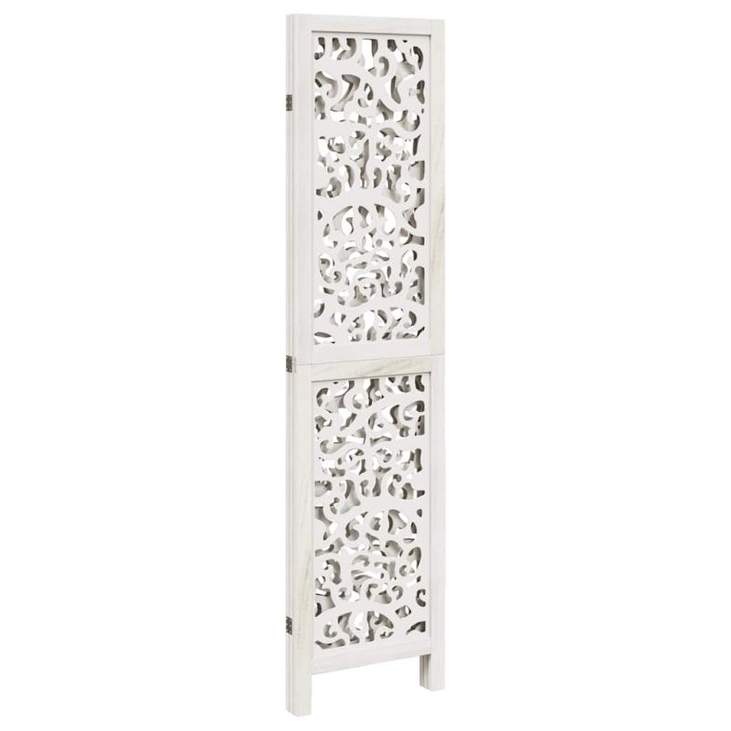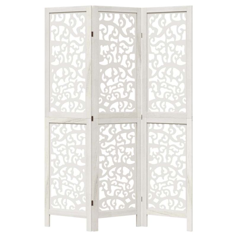 Разделител за стая, 3 панела, бял, дърво пауловния масив