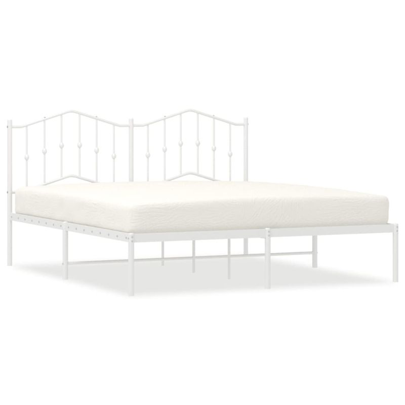 Метална рамка за легло с горна табла, бяла, 180x200 см