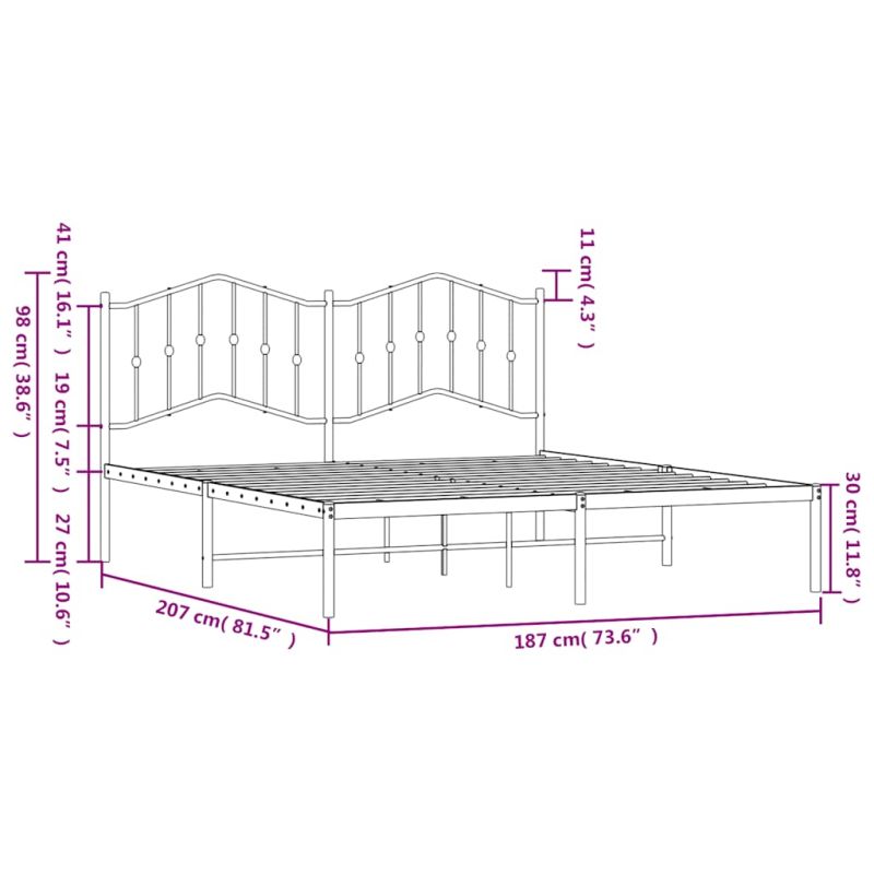 Ако търсите здрава рамка за легло за вашата спалня, тогава тази класическа рамка за легло с елегантен и непреходен дизайн е идеалният избор за вас! Здрава метална конструкция: Рамката на леглото е изработена от прахово боядисана стомана. Стоманата е изключително твърд и здрав материал, който предлага изключителна здравина и стабилност.Метални ламели и крака: Металната рамка на леглото е снабдена с метални ламели и централни крака, които осигуряват на матрака така необходимата опора и дишане.Допълнително място за съхранение: За ваше удобство леглото за гости също има допълнително пространство отдолу, за да държите вашите кутии за съхранение далеч от погледа.Отлична опора: Таблата на рамката за легло ви осигурява отлична опора за гърба, когато седите в леглото, за да четете или гледате телевизия. Добре е да се знае:Към това легло не е включен матрак. Ние предлагаме разнообразна селекция от матраци. Можете да проверите нашия магазин за подходящ матрак.