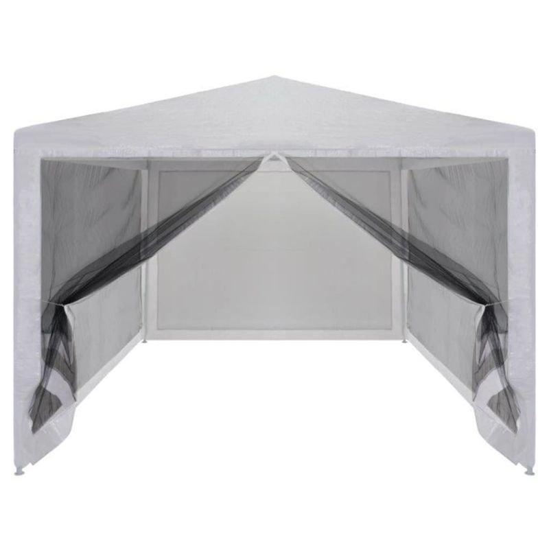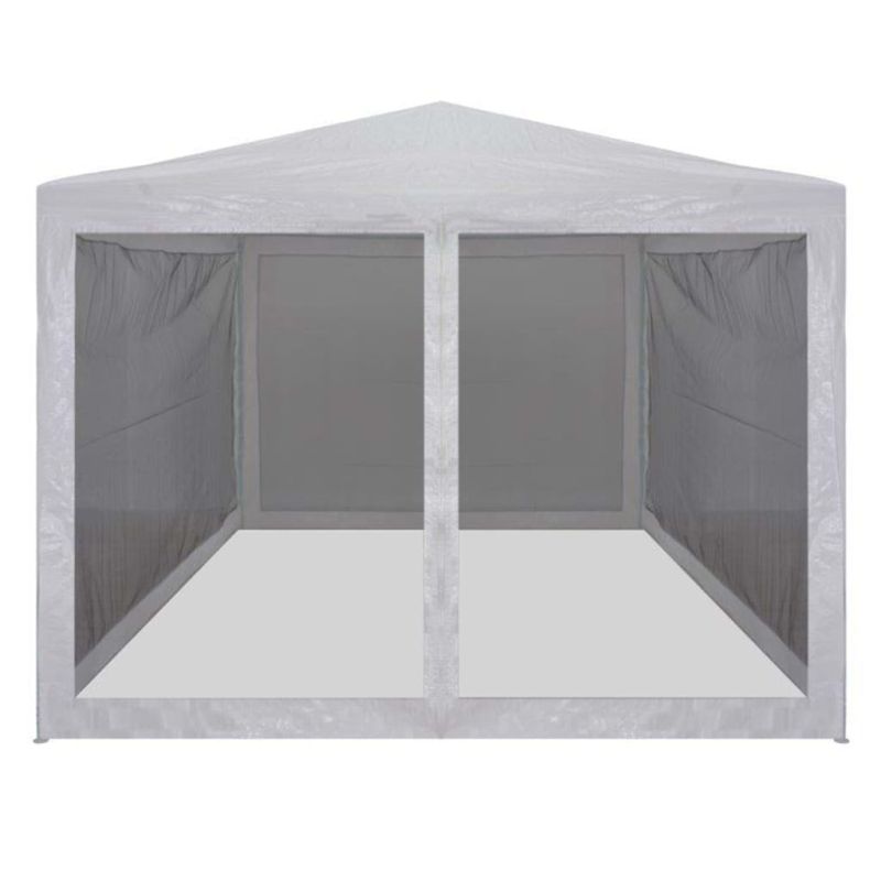 Нашата парти шатра с мрежести странични стени е идеална за всеки, който иска да се наслади на природата, без да бъде обезпокояван от насекоми, докато участва в дейности на открито. Тази парти шатра ще бъде идеална за най-разнообразни събития на открито, като шоу представления, сватби, партита, барбекюта, фестивали и др. Изработена от издръжлива, прахово боядисана стомана, тази шатра за партита е изключително издръжлива. Покривното покритие е изработено от висококачествен PE, което го прави устойчиво на вода и UV лъчи. Палатката има четири мрежести странични стени, които ви предпазват от досадни насекоми. На една от страничните стени има вход с цип за лесен достъп. С включените монтажни аксесоари шатрата за партита се инсталира лесно. ЗАБЕЛЕЖКА: Този продукт НИКОГА не трябва да се използва при лошо време, като бурен вятър, силен дъжд, сняг, буря и т.н.