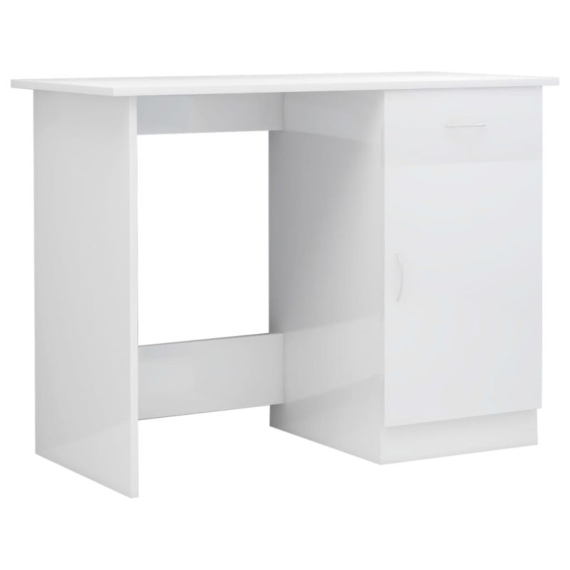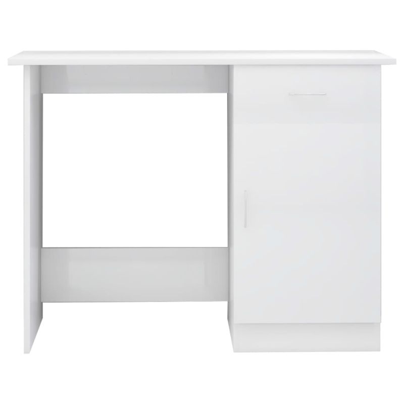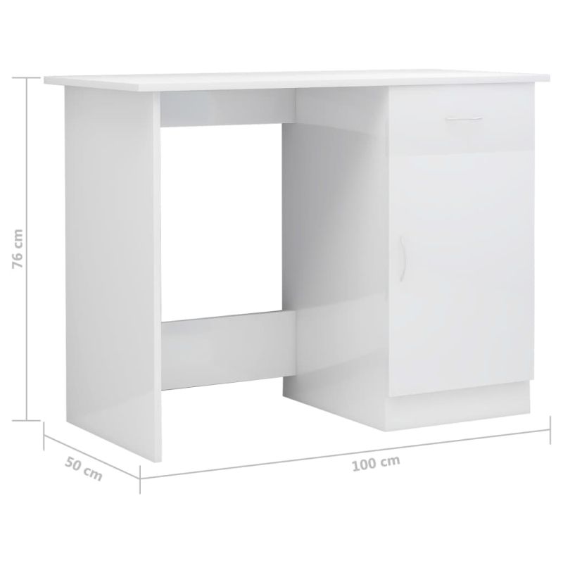 Бюро, бял гланц, 100x50x76 см, инженерно дърво