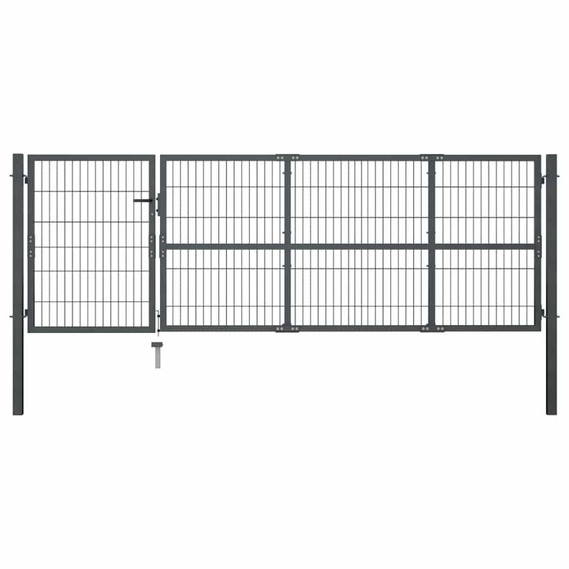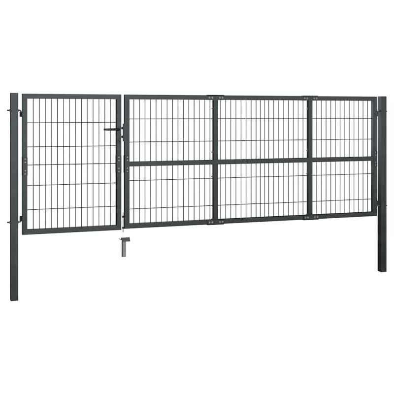 Градинска порта със стълбове от стомана 350x100 см, антрацит