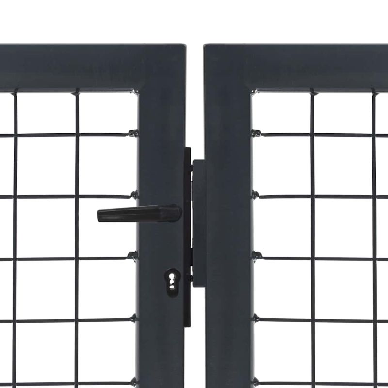 Нашата стоманена оградна врата ще бъде идеален входен портал за оградата около вашата градина или вътрешен двор. Тази здрава и издръжлива градинска оградна порта е произведена от здрава, прахово боядисана стомана. Тя е устойчива на ръжда и корозия и е подходяща за дългосрочна употреба на открито. С гъста мрежа от заварени телове, придаващи допълнителна здравина, нашата градинска порта ще осигури висока степен на сигурност, като същевременно формира приказен вход към вашия имот. Вратата се доставя заедно със стълбове и с три съответстващи ключа за вградената ключалка.