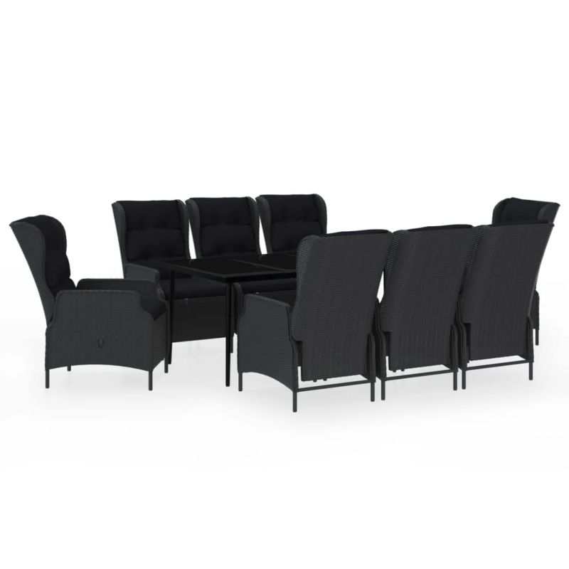 Насладете се на хубава храна или следобеден чай във вашето открито пространство с този градински трапезен комплект! Отличаващ се с елегантен дизайн, той ще се превърне във фокусната точка на вашата градина и вътрешен двор! Практичният трапезен комплект за открито има стоманена рамка, което го прави здрав и устойчив. Градинските наклоняеми столове са изработени от водоустойчив и не изискващ поддръжка PE ратан, което ги прави идеални за употреба на открито. Плътно подплатените възглавници осигуряват допълнителен комфорт по време на хранене. Калъфката на възглавницата е снабдена с цип, може да се сваля и пере. Благодарение на газовия повдигащ механизъм облегалката също може да се регулира, за да се нагоди към вашите пози. С докосване на бутона отстрани облегалката може да се накланя за удобна позиция. В допълнение, гладкият стъклен плот се почиства лесно с влажна кърпа и е идеален за поставяне на ястия, напитки и други декоративни елементи. Забележка: За да удължите живота на вашите градински мебели, ви препоръчваме да ги защитите с водоустойчиво покритие. Максимално 110 кг на седалка. Съобразете се с риска от открит огън и други източници на силна топлина в близост до продукта.