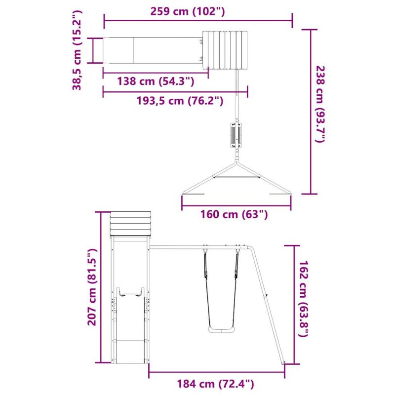 Искате ли да дадете на децата си свободата да играят у дома? Това дървено комбинирано детско съоръжение за игра на открито превръща задния ви двор в детска площадка за изпълнени с фантазия приключения! Издръжлив материал: Тази къща за игра е изработена от масивно дугласко дърво. Дървесината от дугласка ела също е изключително издръжливо дърво, което е много подходяща за открито. Дугласката дървесина е достатъчно здрава, за да функционира с минимални грижи, дори под въздействието на атмосферните влияния.Здрава и стабилна рамка: Дървената рамка осигурява здравина и стабилност. Освен това крачетата във формата на буквата "А" на детската люлка позволяват баланс. Многофункционални центрове за дейности: Катерушката разполага с платформа с височина 90 см и се отличава с вълнообразна пързалка, люлка, както и с пясъчник. Вашите деца могат да поканят и своите приятелчета да се присъединят към забавлението. Внимателно разработен дизайн: Околните дървени парапети са проектирани така, че да гарантират безопасността на децата по време на веселите им игри. Освен това дървеният покрив осигурява сянка за вашите деца в горещите летни дни.Безкрайно забавление: Това дървено съоръжение за игра на открито, което предлага много забавления, е идеалният начин детето ви и неговите приятели да се веселят, да прекарват повече време вобщуване и да създават безценни спомени! Внимание:Само за домашна употребаИзползване на открито Не е подходяща за деца под 3 години Препоръчителна възраст на потребителя: 3-8 години Добре е да се знае:За да бъде сглобяването възможно най-лесно, всеки продукт се доставя с ръководство. Предупреждение. Не е подходящ за деца под 3 години. Само за домашна употреба. GPSR