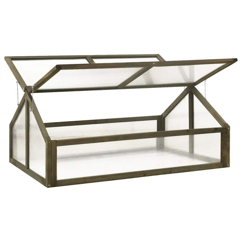 Тази дървена оранжерия е чудесно решение за защита на билките от студеното време и осигурява защита от замръзване през пролетта. Тя също така допълва вашата зона на открито. Градинската оранжерия е изработена от чам масив, което я прави стабилна и издръжлива. Сандъчето е достатъчно дълбоко и широко, за да побере голямо количество почва и осигурява просторно място за вашите растения, зеленчуци, билки и цветя. Поливането и грижата за растенията са лесни благодарение на капака с панти. Моля, забележете, че покривът не може да издържи на обилен снеговалеж.