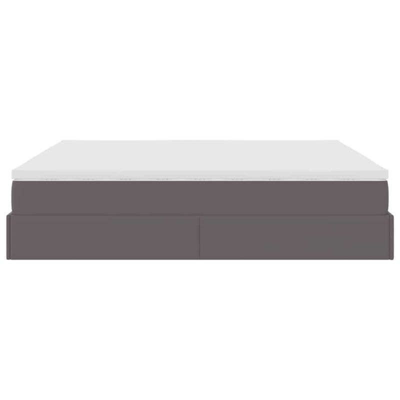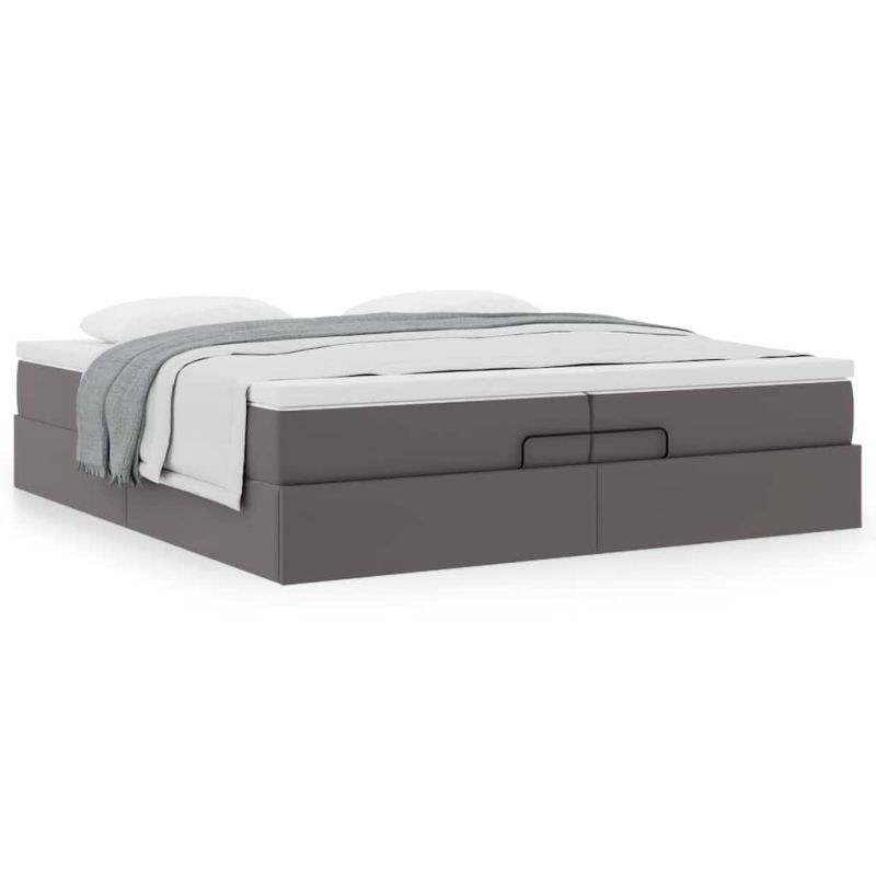 Османска легло с матраци, сиво, 200x200 см, изкуствена кожа