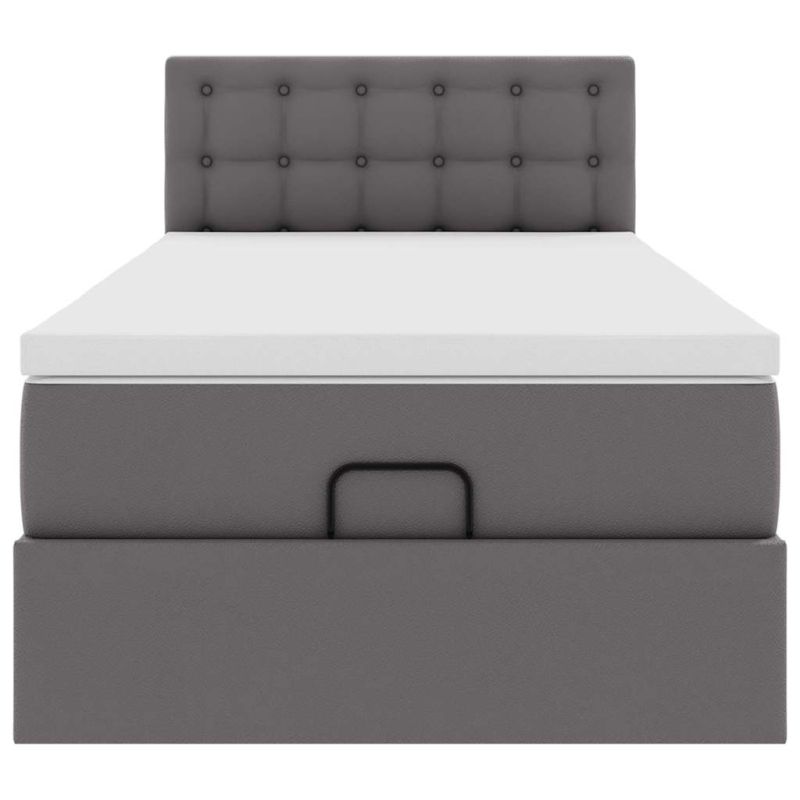 Османска легло с матраци&LED, сиво, 100x200 см, изкуствена кожа