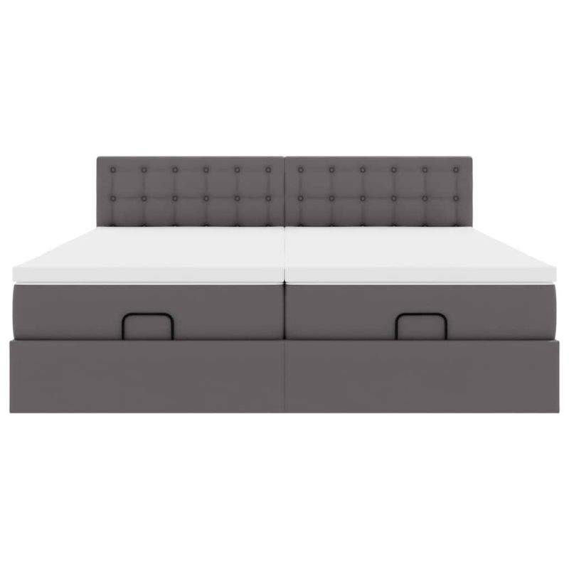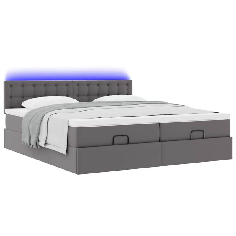 Османска легло с матраци&LED, сиво, 200x200 см, изкуствена кожа