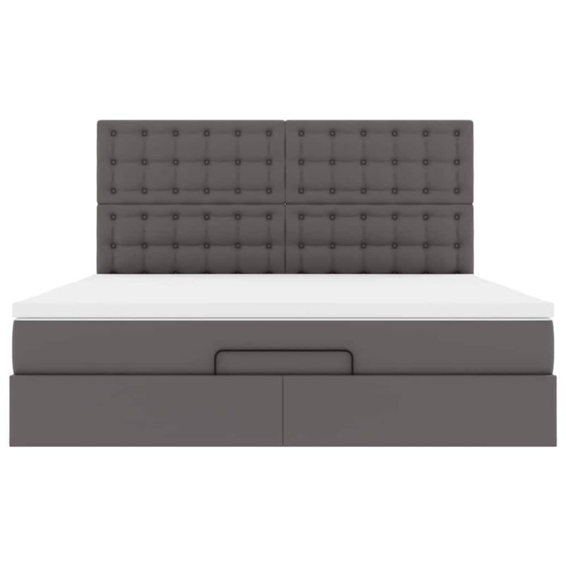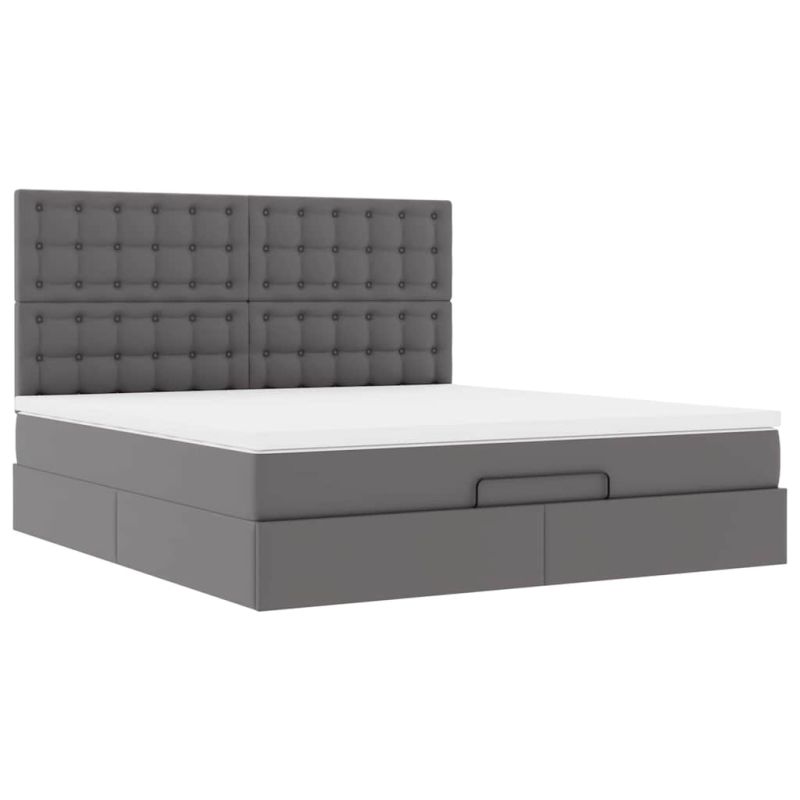 Османска легло с матрак&LED, сиво, 180x200 см, изкуствена кожа
