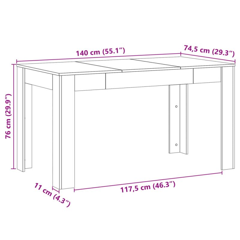Тази трапезна маса, проектирана с изчистени и семпли линии, ще бъде чудесен избор за вашата трапезария или кухня. Издръжлив материал: Инженерната дървесина е с изключително качество с гладка повърхност и също така се отличава със здравина, стабилност и устойчивост на влага.Практичен плот: Здравият плот на масата за трапезария е идеален за поставяне на ястия, напитки и други декоративни елементи.Лесна за поддръжка: Благодарение на гладката си повърхност, масата се почиства лесно с влажна кърпа и изисква по-малко поддръжка.