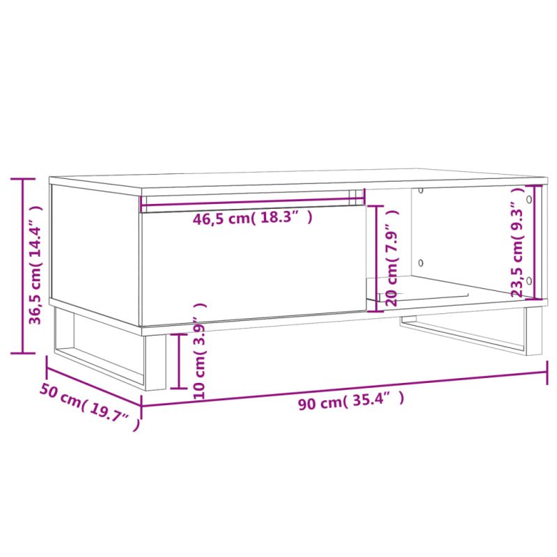 Добавете нотка елегантност към вашия хол с тази стилна масичка за кафе. Издържлив материал: Инженерната дървесина е с изключително качество с гладка повърхност и също така се отличава със здравина, стабилност и устойчивост на влага. Изработена от инженерно дърво, страничната маса се почиства лесно с влажна кърпа.Достатъчно място за съхранение: Тази масичка за диван има чекмедже и отделение, което предлага достатъчно място за съхранение, за да поддържате най-важните си вещи добре организирани и под ръка.Стабилен плот: Здравият плот е идеален и за поставяне на вашите напитки, храна и други декоративни елементи.Метални крака: Металните крака добавят модерен и спокоен стил към вашия интериор, като същевременно гарантират стабилност.