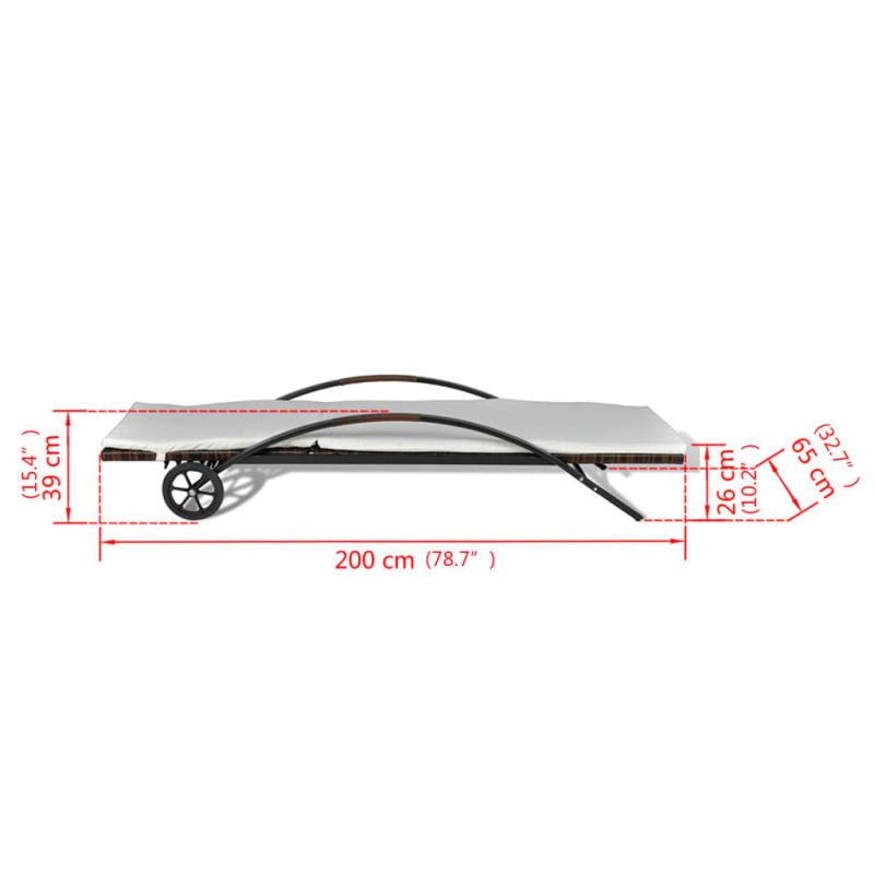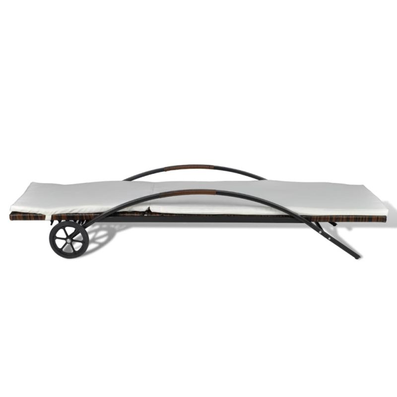 Шезлонг с шалте и колелца, кафяв полиратан