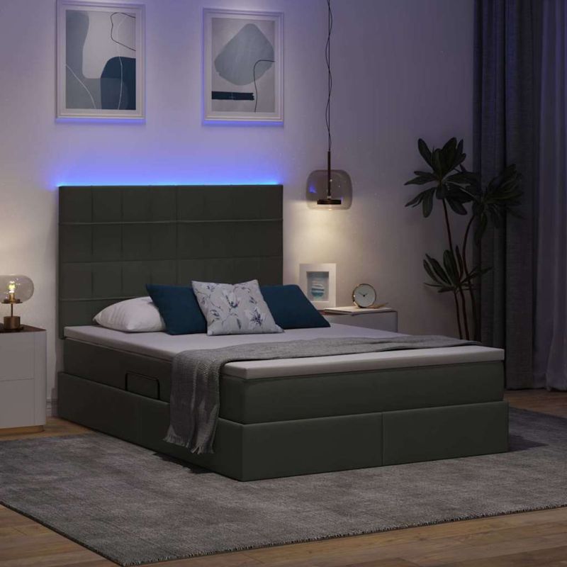 Легло с място за съхранение и LED с LED Тъмен сив 140 x 190 cm