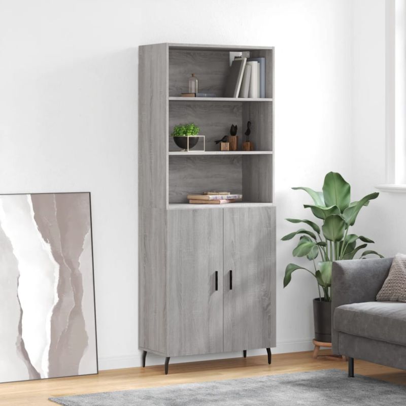 Висок шкаф, сив сонома, 69,5x34x180 см, инженерно дърво